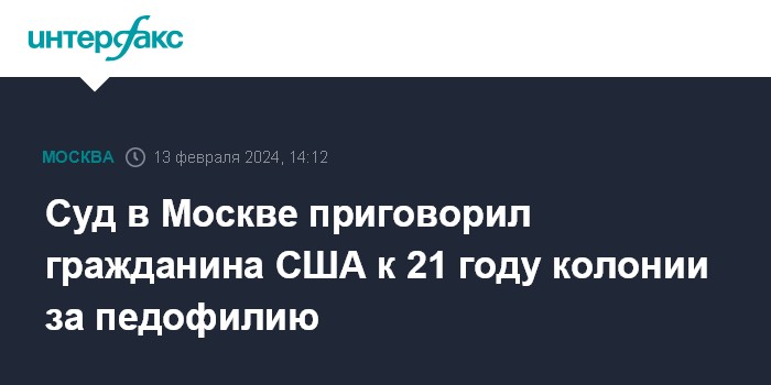 Суд в Москве приговорил гражданина США к 21 году колонии за педофилию