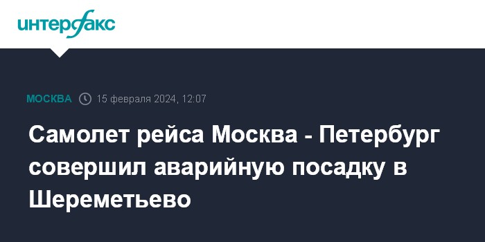 Самолет рейса Москва - Петербург совершил аварийную посадку в Шереметьево