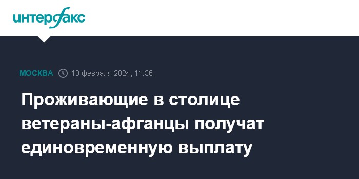 "В честь 35-й годовщины вывода ограниченного контингента советских войск из Афганистана правительство Москвы приняло решение о выплате единовременной материальной помощи инвалидам и ветеранам-афганцам, а также семьям погибших в Афганистане военнослужащих, проживающим в столице", - сообщается на официальном портале мэра и правительства столицы в воскресенье.