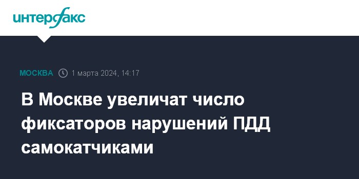 Москва. 1 марта. INTERFAX.RU - В Москве в тестовом режиме работают десять комплексов фотовидеофиксации, которые выявляют нарушения правил дорожного движения велосипедистами и пользователями самокатов, в 2024 году число этих комплексов увеличат, сообщил заммэра города Максим Ликсутов. Его слова приводит телеграм-канал Департамента транспорта.