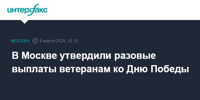 Москва. 6 марта. INTERFAX.RU - Правительство Москвы утвердило единовременные выплаты в размере от 10 до 25 тысяч рублей ветеранам войны и труженикам тыла в связи с 79-й годовщиной Победы в Великой Отечественной войне, сообщил сайт мэрии.