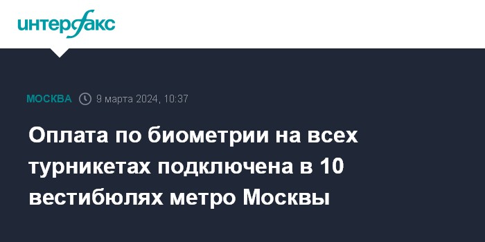 Москва. 9 марта. INTERFAX.RU - Столичный дептранс сообщил о расширении возможностей оплаты в метро по биометрии, теперь все турникеты десяти вестибюлей подключены к такому способу оплаты.