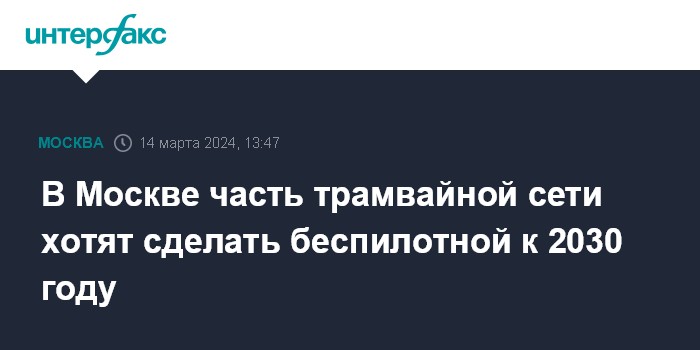 Москва. 14 марта. INTERFAX.RU - В Москве к 2030 году значительная часть трамвайной сети станет беспилотной, что на 27% сократит количество непунктуальных рейсов трамваев, сообщил мэр столицы Сергей Собянин. Об этом сказано в презентации в блоге мэра.