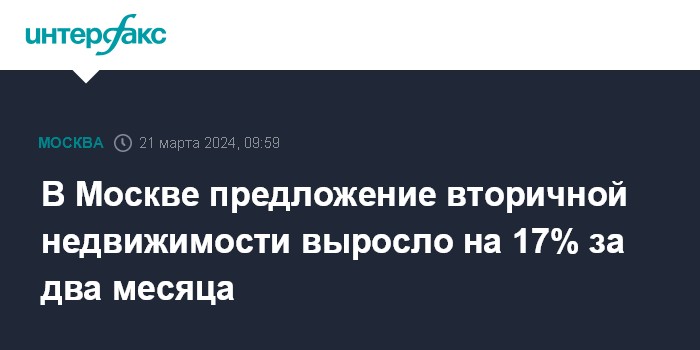 Москва. 20 марта. INTERFAX.RU - Предложение на вторичном рынке Москвы выросло за февраль-март на 17%, подсчитали аналитики компании "Инком-Недвижимость".