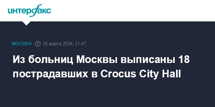 Из больниц Москвы выписаны 18 пострадавших в Crocus City Hall