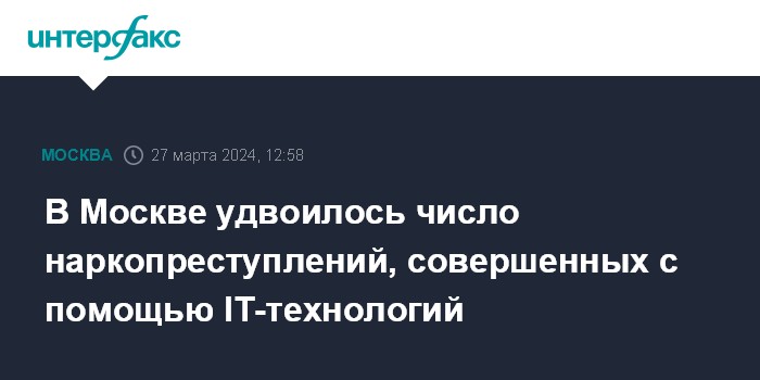 Москва. 27 марта. INTERFAX.RU - В Москве в 2023 году почти удвоилось число наркопреступлений, совершенных с использованием информационно-телекоммуникационных технологий, сообщил в Мосгордуме начальник ГУ МВД по столице Олег Баранов.