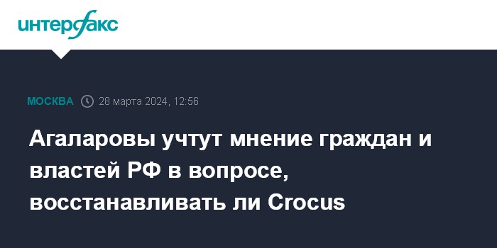 Агаларовы учтут мнение граждан и властей РФ в вопросе, восстанавливать ли Crocus