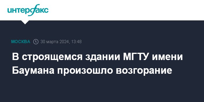 Москва. 30 марта. INTERFAX.RU - Возгорание произошло в строящемся здании многофункционального библиотечного комплекса кампуса Московского государственного технического университета (МГТУ) имени Н.Э. Баумана.