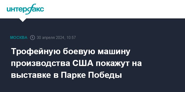 Ранее ведомство сообщило, что Минобороны организует в Парке Победы на Поклонной горе в Москве проведение выставки трофейного вооружения и военной техники, захваченной в ходе СВО, она пройдет с 1 по 31 мая.