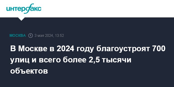 В Москве в 2024 году благоустроят 700 улиц и всего более 2,5 тысячи объектов