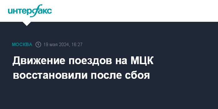 Москва. 19 мая. INTERFAX.RU - На Московском центральном кольце (МЦК) после сбоя восстановлено движение поездов, сообщила в воскресенье Московская железная дорога (МЖД).
