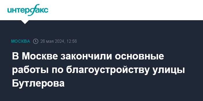 Москва. 26 мая. INTERFAX.RU - Мэр Москвы Сергей Собянин сообщил о завершении основных работ по благоустройству улицы Бутлерова на юго-западе столицы.