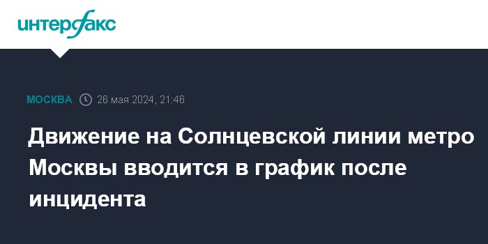 Движение на Солнцевской линии метро Москвы вводится в график после инцидента