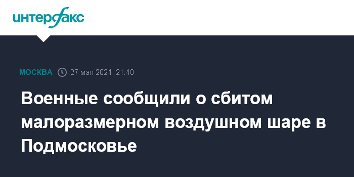 Москва. 27 мая. INTERFAX.RU - Российские военные сообщили, что задействовали системы ПВО для поражения малоразмерного воздушного шара над Подмосковьем.