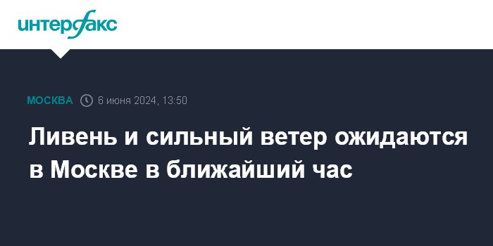 Ливень и сильный ветер ожидаются в Москве в ближайший час