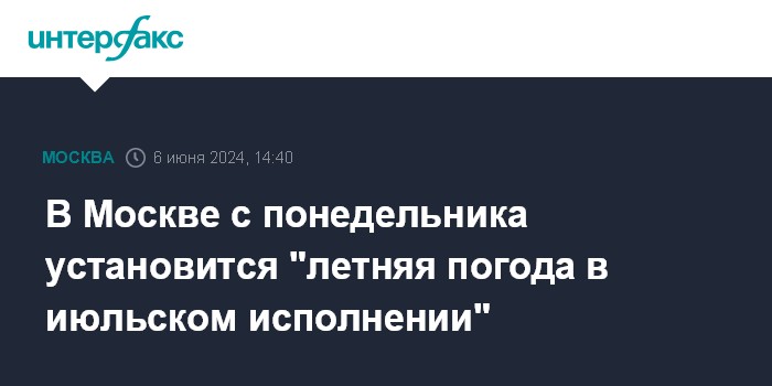 В Москве с понедельника установится "летняя погода в июльском исполнении"