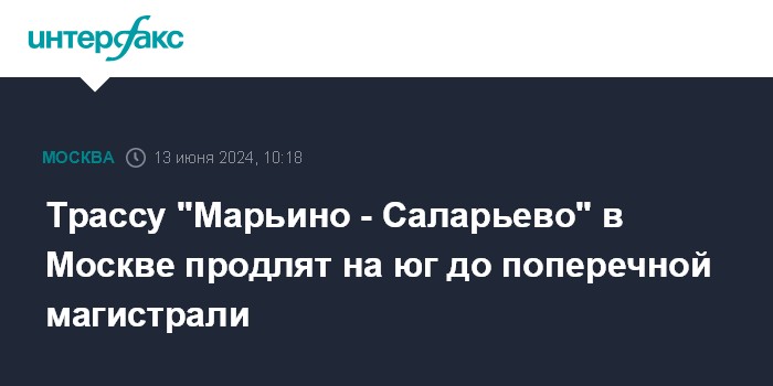 Трассу "Марьино - Саларьево" в Москве продлят на юг до поперечной магистрали