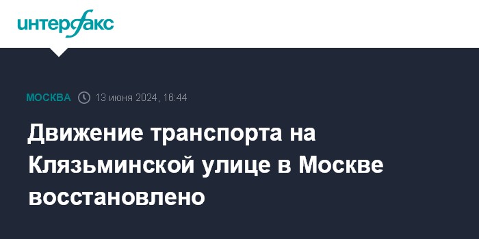 Движение транспорта на Клязьминской улице в Москве восстановлено
