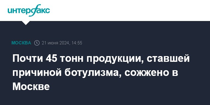 Почти 45 тонн продукции, ставшей причиной ботулизма, сожжено в Москве