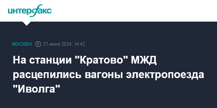 Москва. 27 июня. INTERFAX.RU - Саморасцеп между вагонами электропоезда "Иволга" произошел при отправлении с платформы "Кратово" Казанского направления Московской железной дороги (МЖД), пострадавших нет, сообщили в МЖД.