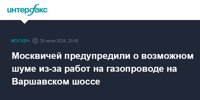 Москвичей предупредили о возможном шуме из-за работ на газопроводе на Варшавском шоссе