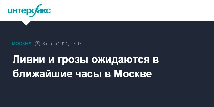 Москва. 3 июля. INTERFAX.RU - Кратковременные ливни с грозами ожидаются в столице в ближайшие часы и до конца среды, сообщил заместитель мэра Москвы по вопросам ЖКХ и благоустройства Петр Бирюков.