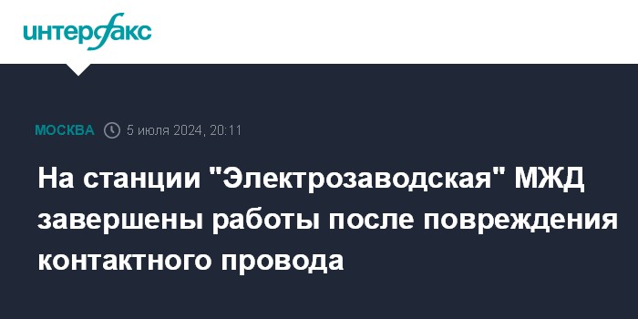 Москва. 5 июля. INTERFAX.RU - На станции "Электрозаводская" Казанского направления Московской железной дороги (МЖД) завершили восстановительные работы, движение осуществляется по всем путям, сообщается в телеграм-канале МЖД.