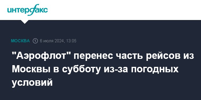 Москва. 6 июля. INTERFAX.RU - "Аэрофлот" перенес часть рейсов с вылетом в субботу из-за ухудшения погодных условий в столичном регионе накануне.