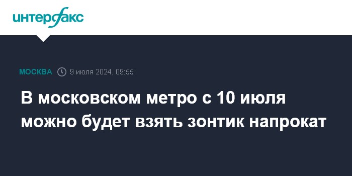 Москва. 9 июля. INTERFAX.RU - В Московском метрополитене опробуют сервис проката зонтов "ЗонтБери" - зонтшеринг, он заработает с 10 июля, сообщили в столичном Департаменте транспорта.