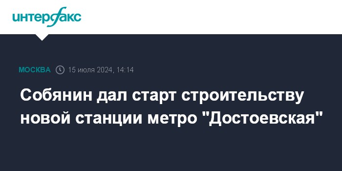 Москва. 15 июля. INTERFAX.RU - Мэр Москвы Сергей Собянин дал старт строительству станции "Достоевская" Кольцевой линии метро.