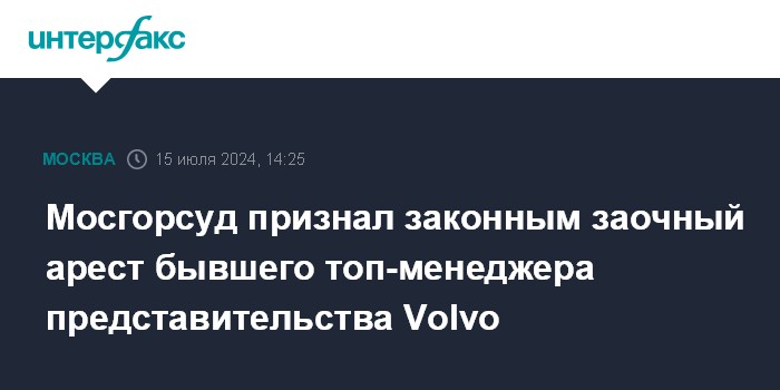 Мосгорсуд признал законным заочный арест бывшего топ-менеджера представительства Volvo
