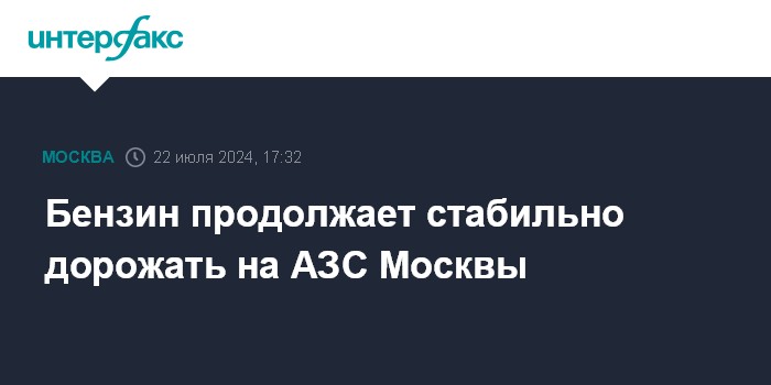 Москва. 22 июля. INTERFAX.RU - Цены на бензин на столичных АЗС на прошлой неделе продолжили активно повышаться, Московская топливная ассоциация (МТА) фиксирует их рост на всех сетях заправок в периметре своего мониторинга, свидетельствуют данные на сайте организации.