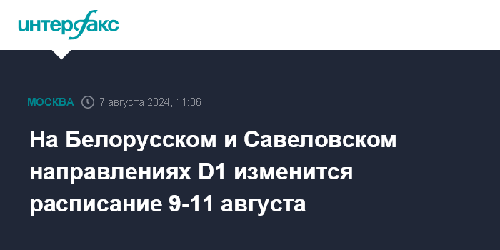 На Белорусском и Савеловском направлениях D1 изменится расписание 9-11 августа