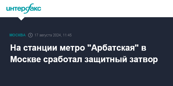 Москва. 17 августа. INTERFAX.RU - В одном из переходов на станции "Арбатская" Арбатско-Покровской линии московского метро сработала система управления защитным затвором, сообщает в субботу в своем телеграм-канале департамент транспорта Москвы.