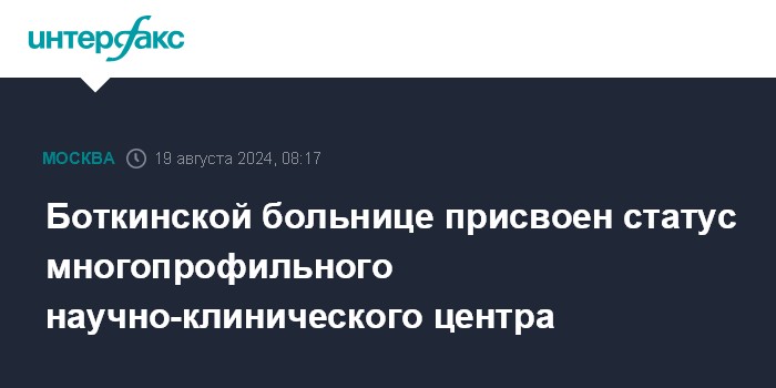 Москва. 19 августа. INTERFAX.RU - Городская клиническая больница имени С.П. Боткина получила статус московского многопрофильного научно-клинического центра, что позволит сотрудникам клиники ускорить проведение научных исследований и внедрение их результатов в практическую работу, сообщил мэр Москвы Сергей Собянин.