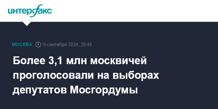 Более 3,1 млн москвичей проголосовали на выборах депутатов Мосгордумы