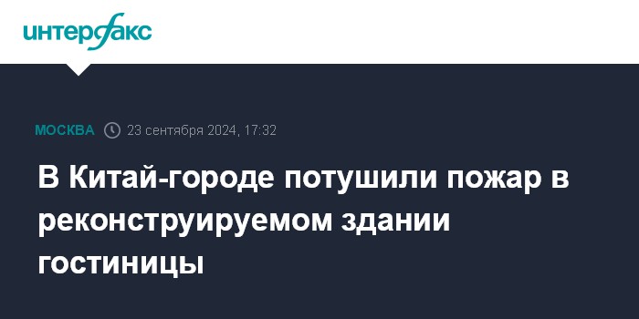 В Китай-городе потушили пожар в реконструируемом здании гостиницы