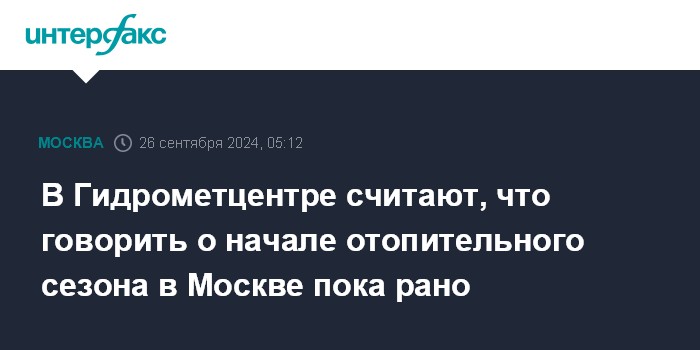 Москва. 26 сентября. INTERFAX.RU - Отопительный сезон в Москве обычно стартует, когда в течение пяти дней среднесуточная температура держится около плюс 8 градусов и ниже; пока в столичном регионе такой погоды не ожидается, сообщил "Интерфаксу" научный руководитель Гидрометцентра России Роман Вильфанд.