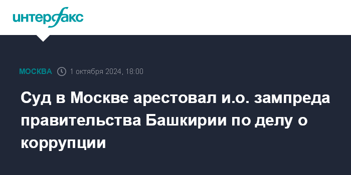 Суд в Москве арестовал и.о. зампреда правительства Башкирии по делу о коррупции