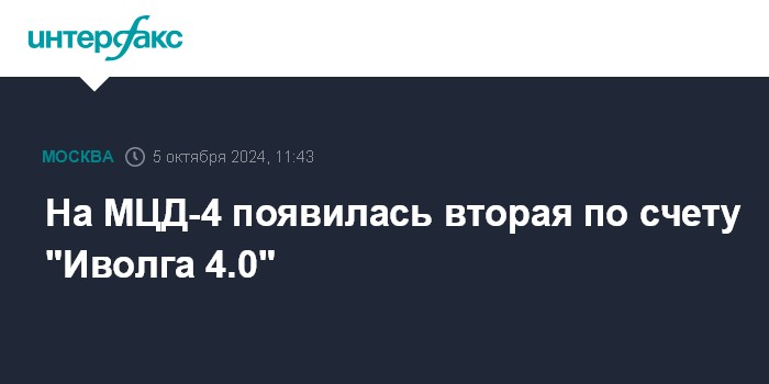 "На четвертый диаметр вышла вторая по счету "Иволга 4.0", до конца года на этот диаметр поступит еще 10 таких поездов", - приводятся слова заммэра Москвы по вопросам транспорта Максима Ликсутова в опубликованном в телеграм-канале департамента сообщении.