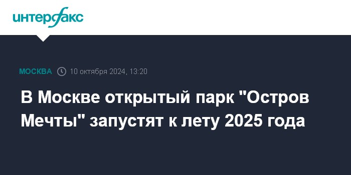 В Москве открытый парк "Остров Мечты" запустят к лету 2025 года