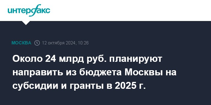 Около 24 млрд руб. планируют направить из бюджета Москвы на субсидии и гранты в 2025 г.