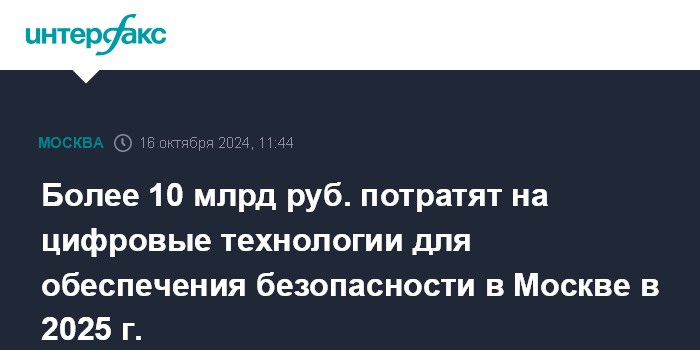 Более 10 млрд руб. потратят на цифровые технологии для обеспечения безопасности в Москве в 2025 г.