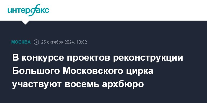 В конкурсе проектов реконструкции Большого Московского цирка участвуют восемь архбюро