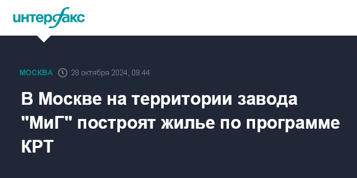 В Москве на территории завода "МиГ" построят жилье по программе КРТ
