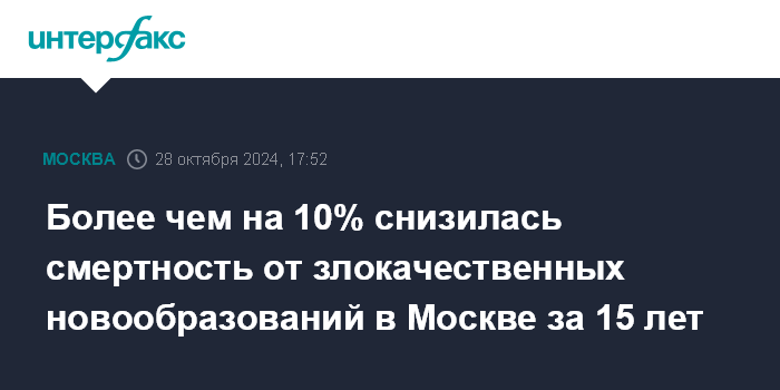 Более чем на 10% снизилась смертность от злокачественных новообразований в Москве за 15 лет
