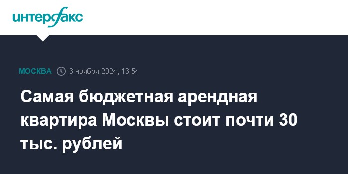 Самая бюджетная арендная квартира Москвы стоит почти 30 тыс. рублей