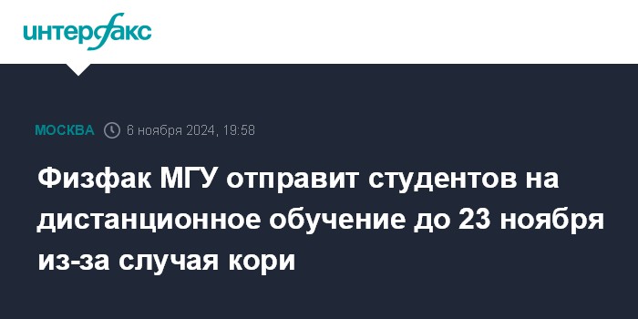 Физфак МГУ отправит студентов на дистанционное обучение до 23 ноября из-за случая кори