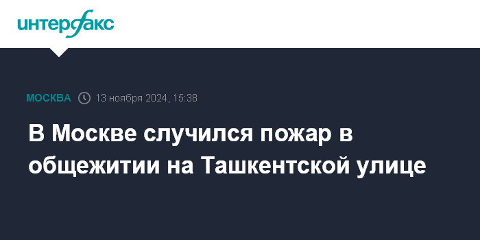 Москва. 13 ноября. INTERFAX.RU - В Москве днем в среду случился пожар в пятиэтажном здании общежития на Ташкентской улице, пожар потушили, сообщает МЧС.