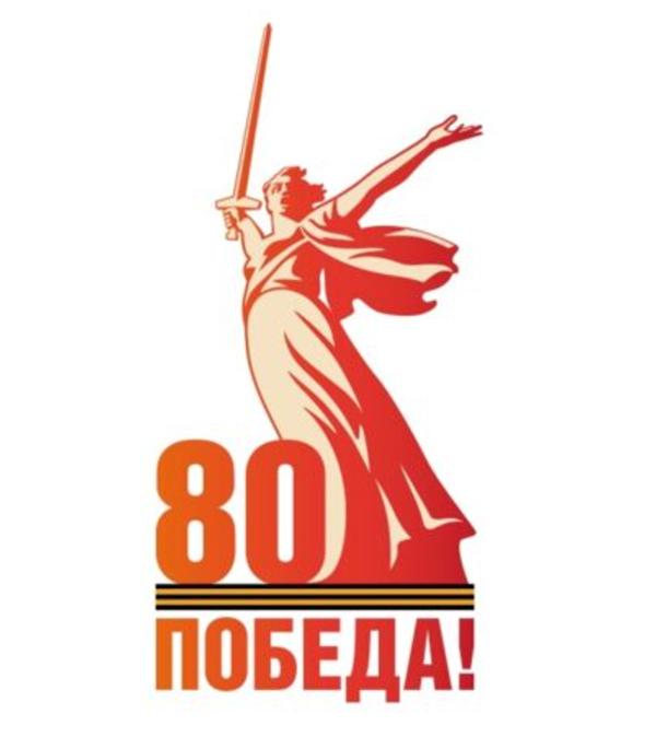 На логотипе изображены памятник "Родина-мать зовет!", Георгиевская лента, число 80 и слово "Победа".